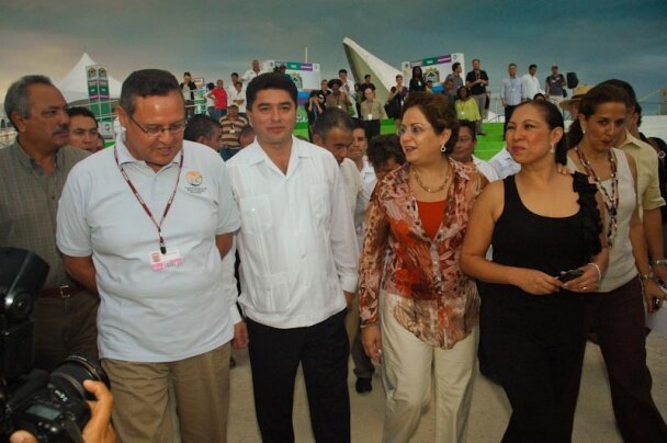 La Embajadora Patricia Espinosa Cantellano, secretaria de Relaciones Exteriores de México y Félix Arturo González Canto, gobernador del estado de Quintana Roo, encabezaron el corte del listón inaugural de la Villa de Cambio Climático